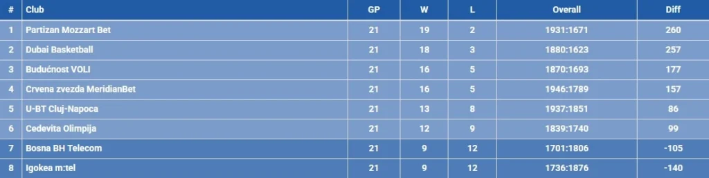Zvezda se ovom pobedom primakla rivalu na dva trijumfa, a usamljeni lider regionalnog šampionata sada je Partizan sa skorom 19-2.